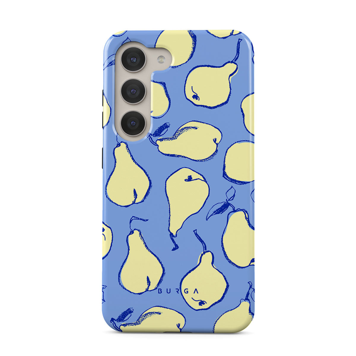 Step into a playful paradise with Pear Crush. Each pear is outlined with a lively, hand-drawn charm. This design brings a playful vibe to your Samsung Galaxy S23 Plus phone case, perfect for those who love to embrace the lighter, more joyful side of life.