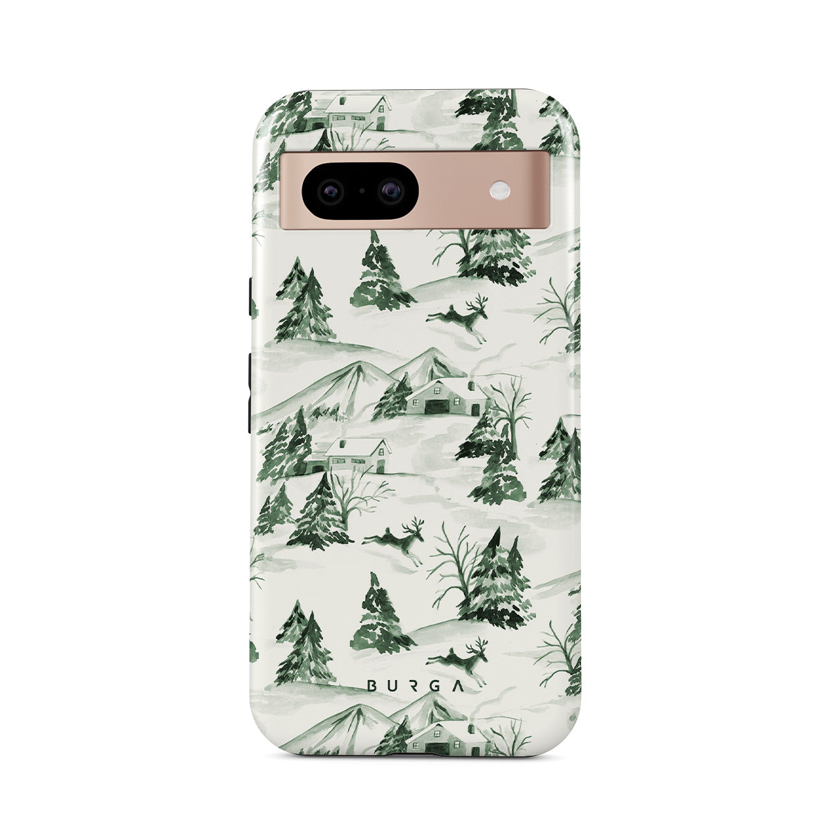 Winter forest Google Pixel 8a phone case design that makes you want to cancel all plans and hibernate.