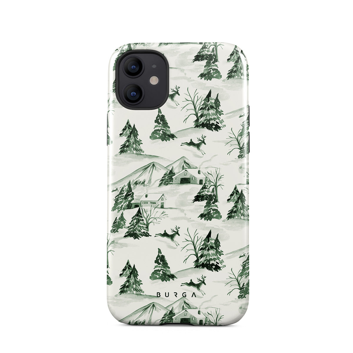 Winter forest iPhone 12 phone case design that makes you want to cancel all plans and hibernate.