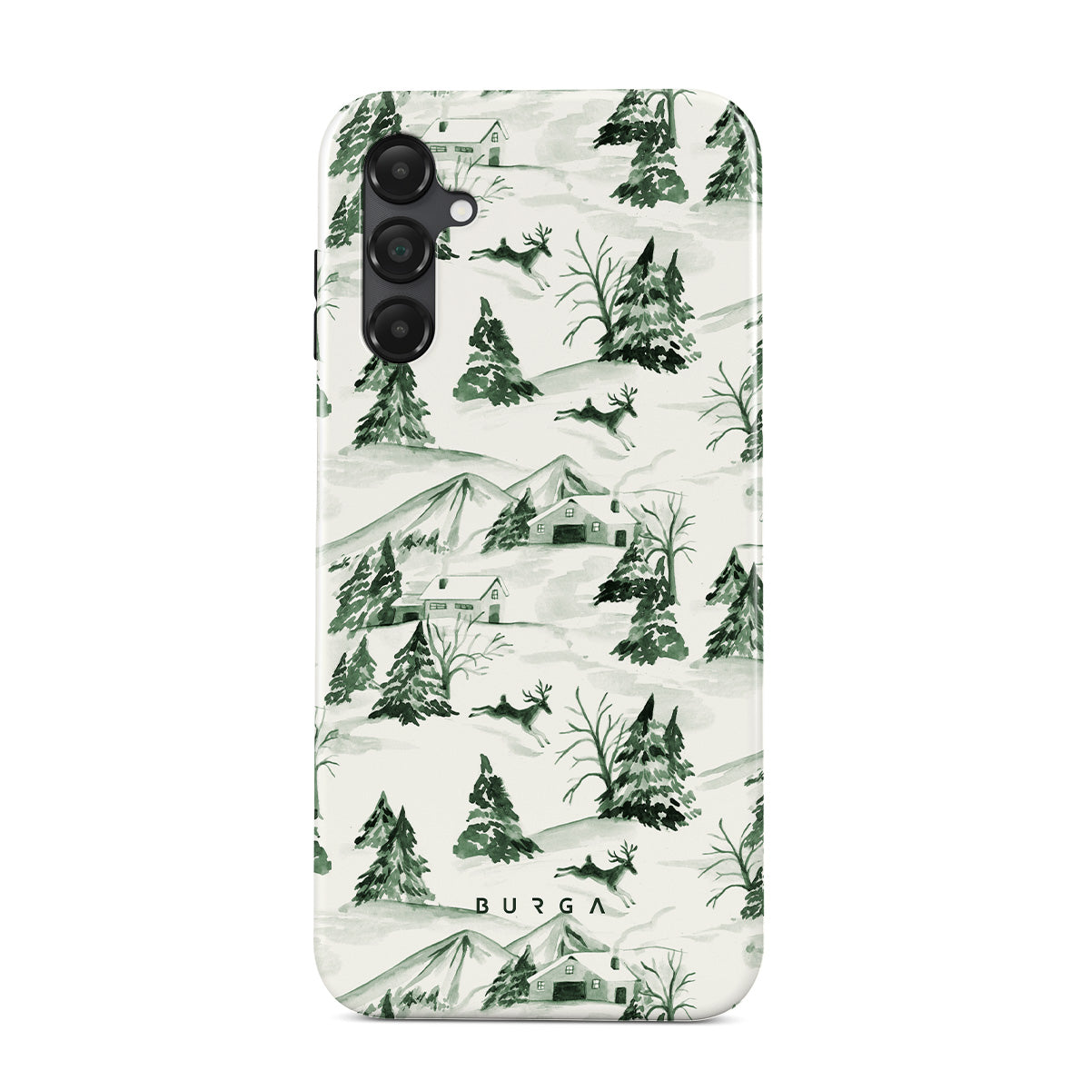 Winter forest Samsung Galaxy A25 phone case design that makes you want to cancel all plans and hibernate.