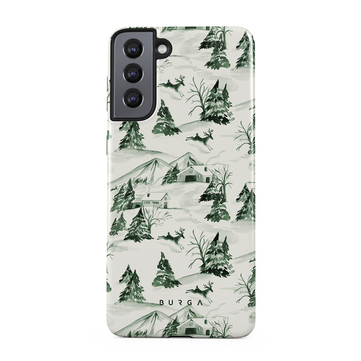 Winter forest Samsung Galaxy S21 phone case design that makes you want to cancel all plans and hibernate.