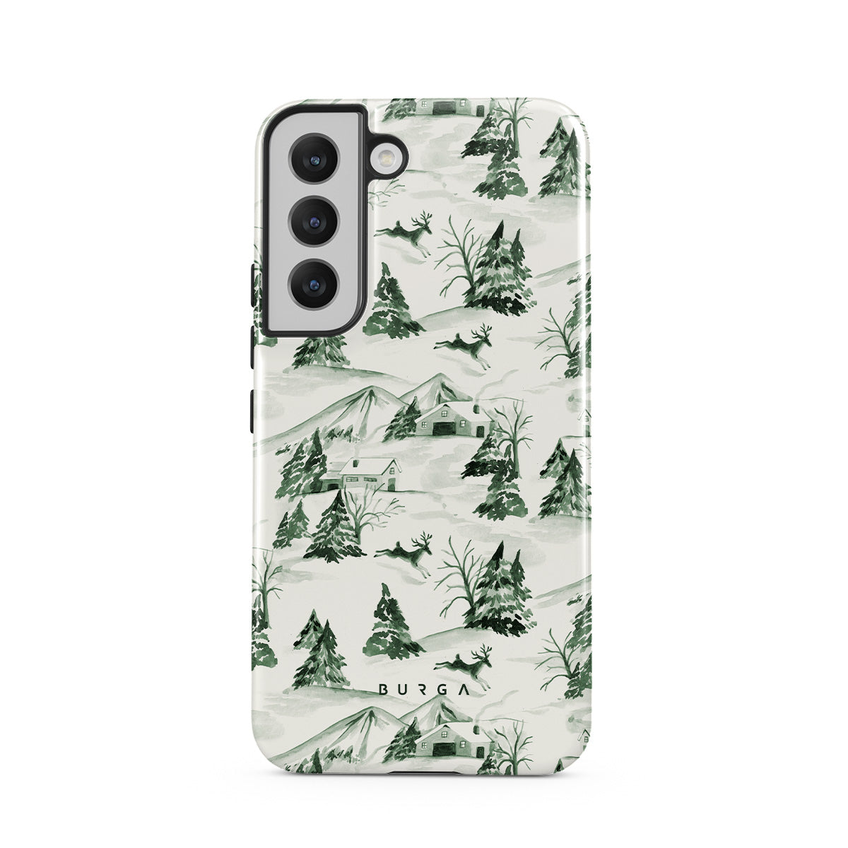 Winter forest Samsung Galaxy S22 phone case design that makes you want to cancel all plans and hibernate.