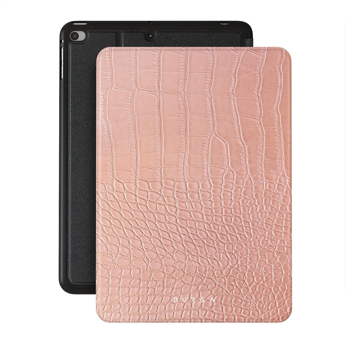 Our Pink Croco-it is a printed pattern * iPad Mini 7.9 (5th Gen) folio case features a classic crocodile design reimagined and showcased in a soft coral shade. The new take on the dangerous animal print will add a touch of softness to your style while simultaneously offering heavy-duty protection to your device.