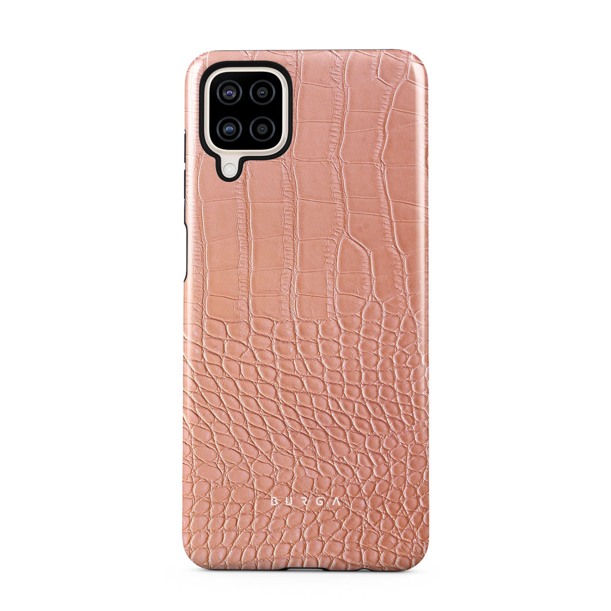 Our Pink Croco Samsung Galaxy A12 4G phone case features a classic crocodile design reimagined and showcased in a soft coral shade. The new take on the dangerous animal print will add a touch of softness to your style while simultaneously offering heavy-duty protection to your device.