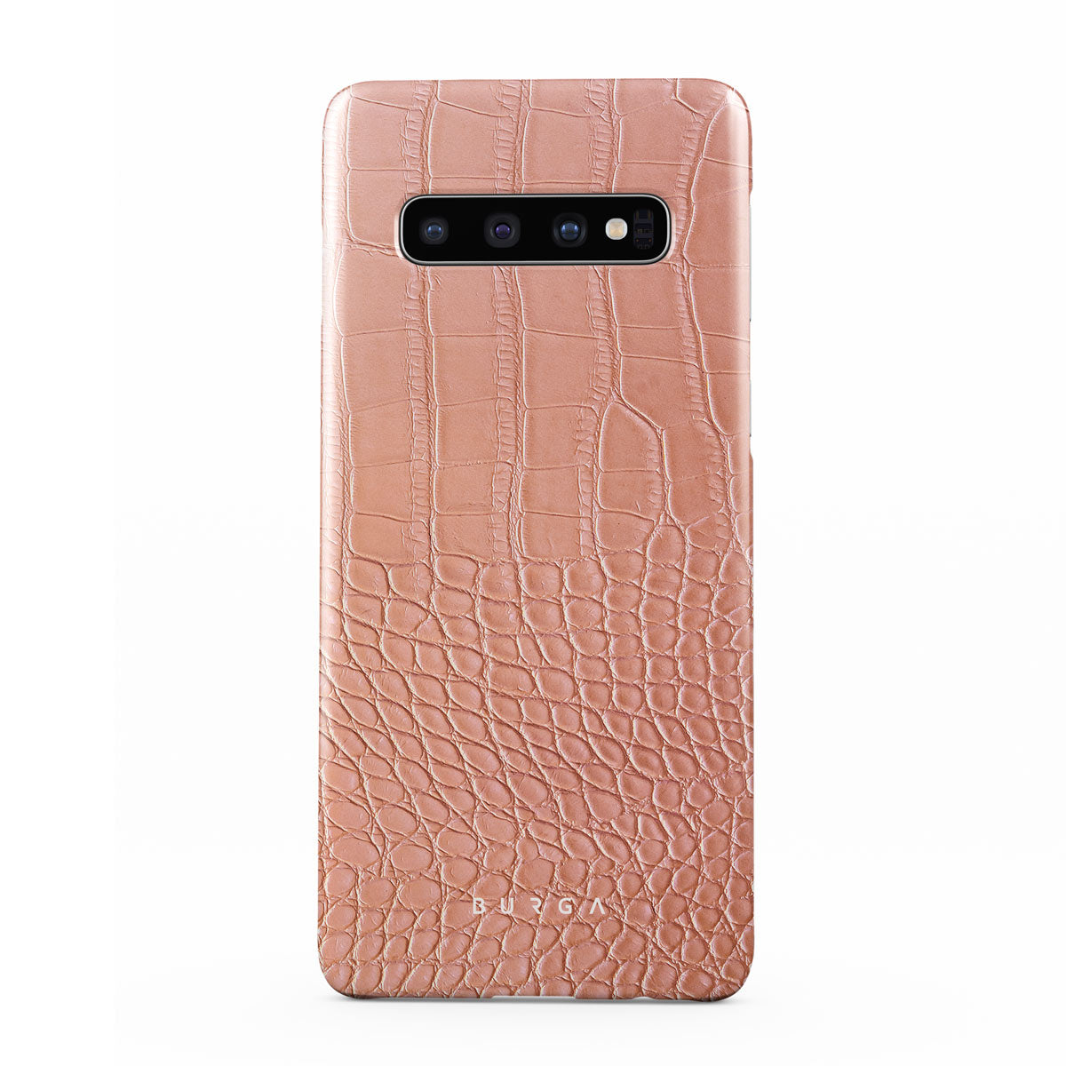Our Pink Croco Samsung Galaxy S10 Plus phone case features a classic crocodile design reimagined and showcased in a soft coral shade. The new take on the dangerous animal print will add a touch of softness to your style while simultaneously offering heavy-duty protection to your device.