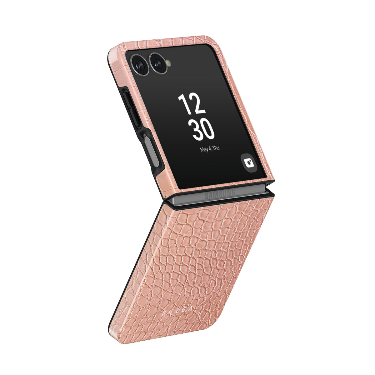 Our Pink Croco Samsung Galaxy Z Flip 7 phone case features a classic crocodile design reimagined and showcased in a soft coral shade. The new take on the dangerous animal print will add a touch of softness to your style while simultaneously offering heavy-duty protection to your device.