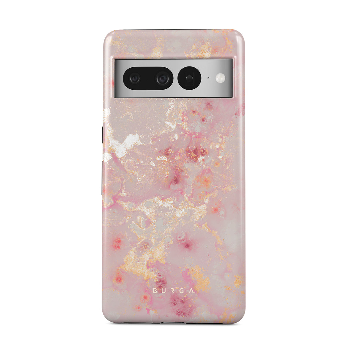 The sun is shining and creates a golden reflection in the corals. Take this scenery with yourself with our pretty and pink Golden Coral Google Pixel 7 Pro phone case. Add protection to your phone with a unique pink marble pattern that is guaranteed to catch everyone's eye.