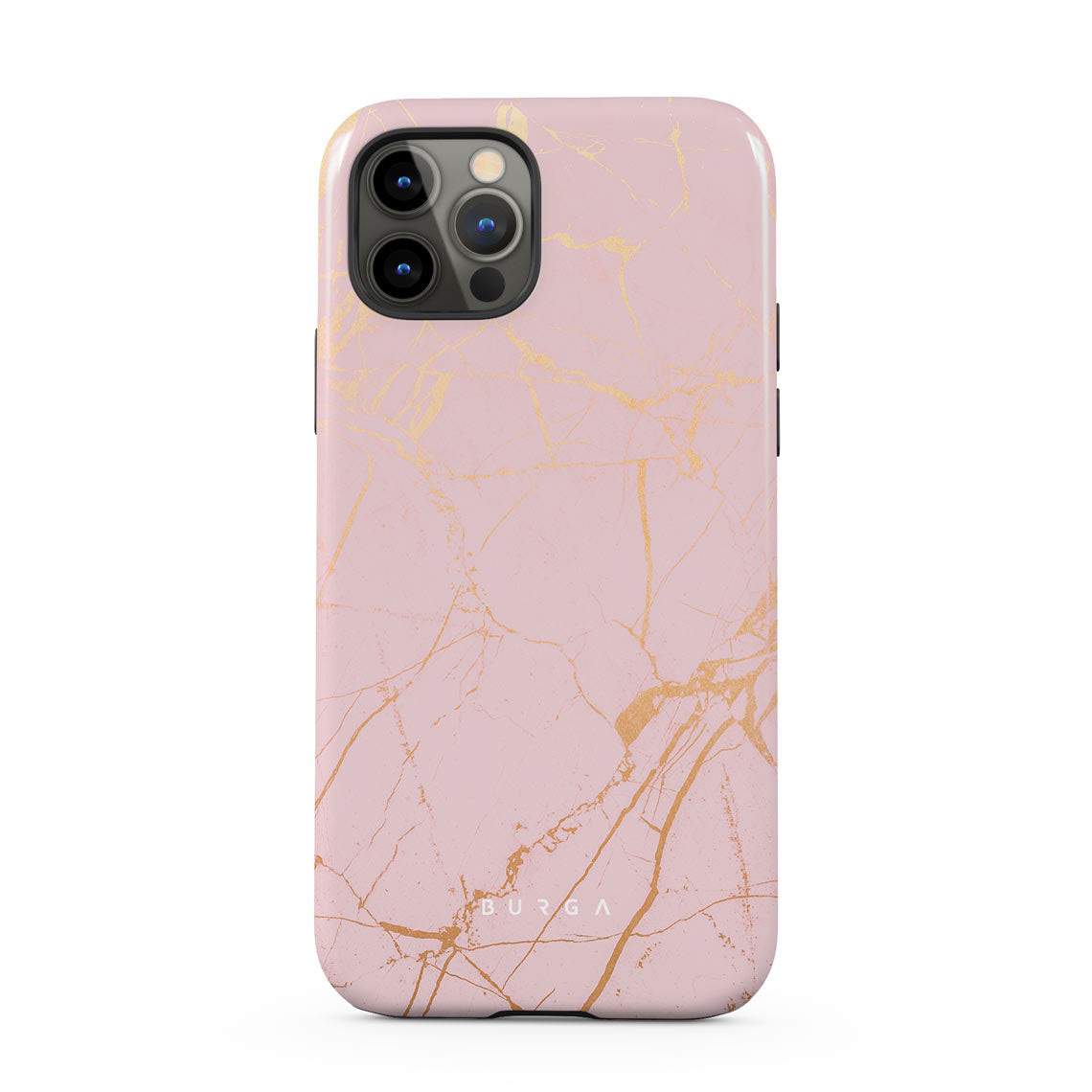 Growing under the beautiful sky and warmed by the rays of the sunshine, when ripped, peach offers you sweetness and softness. This is why our Peachy Gold iPhone 12 Pro phone case design adds a bit of golden color to the pink marble dream making a protective phone case both pretty and durable.