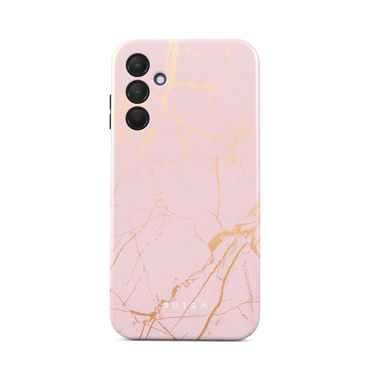 Growing under the beautiful sky and warmed by the rays of the sunshine, when ripped, peach offers you sweetness and softness. This is why our Peachy Gold Samsung Galaxy A51 phone case design adds a bit of golden color to the pink marble dream making a protective phone case both pretty and durable.