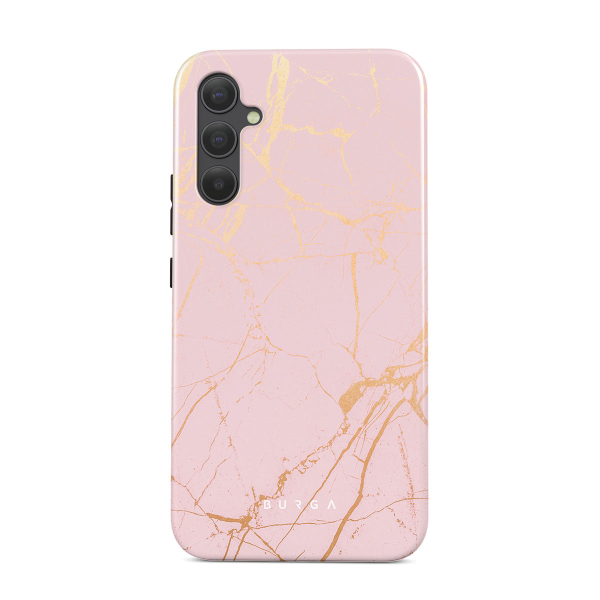 Growing under the beautiful sky and warmed by the rays of the sunshine, when ripped, peach offers you sweetness and softness. This is why our Peachy Gold Samsung Galaxy A34 phone case design adds a bit of golden color to the pink marble dream making a protective phone case both pretty and durable.