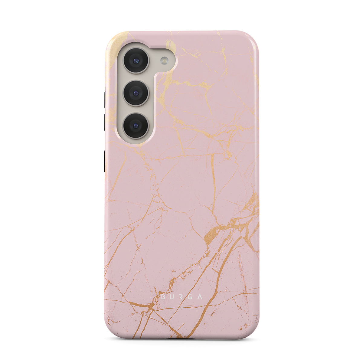 Growing under the beautiful sky and warmed by the rays of the sunshine, when ripped, peach offers you sweetness and softness. This is why our Peachy Gold Samsung Galaxy S23 Plus phone case design adds a bit of golden color to the pink marble dream making a protective phone case both pretty and durable.