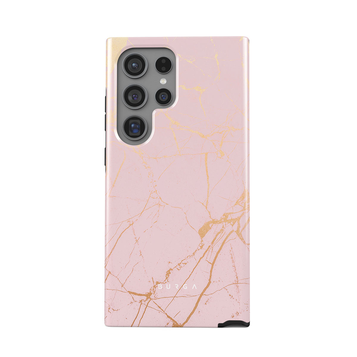 Growing under the beautiful sky and warmed by the rays of the sunshine, when ripped, peach offers you sweetness and softness. This is why our Peachy Gold Samsung Galaxy S24 Ultra phone case design adds a bit of golden color to the pink marble dream making a protective phone case both pretty and durable.