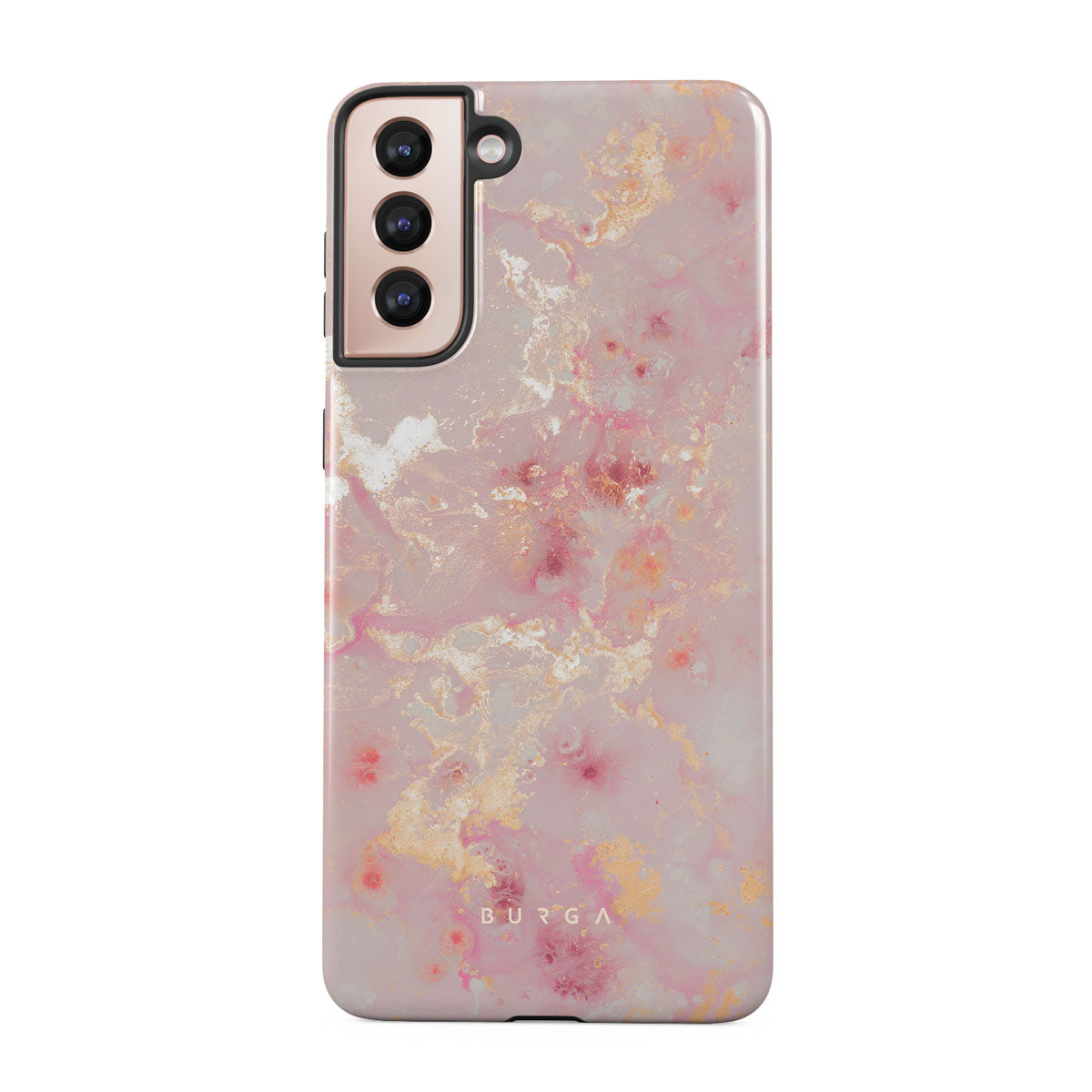 The sun is shining and creates a golden reflection in the corals. Take this scenery with yourself with our pretty and pink Golden Coral Samsung Galaxy S21 Plus phone case. Add protection to your phone with a unique pink marble pattern that is guaranteed to catch everyone's eye.