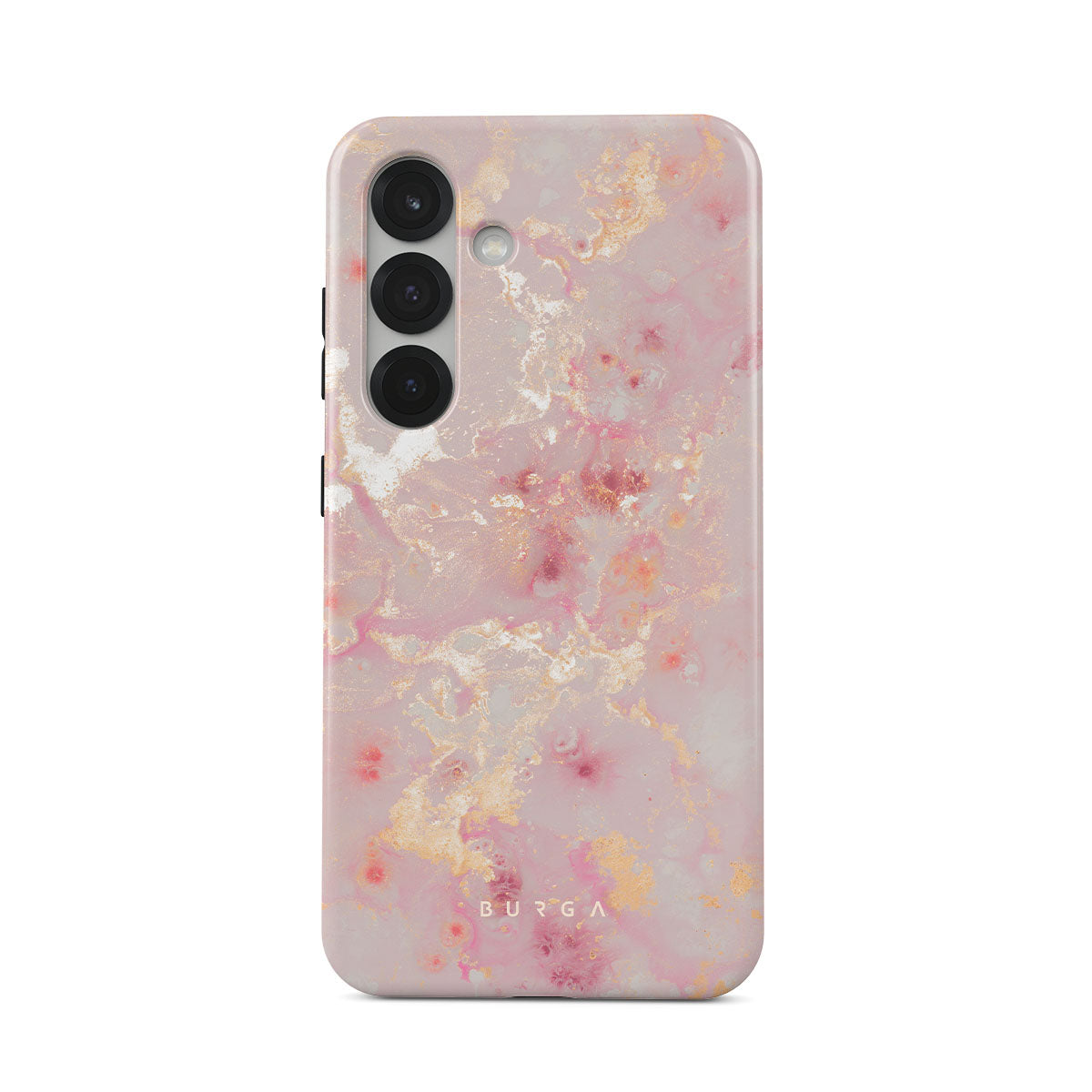 The sun is shining and creates a golden reflection in the corals. Take this scenery with yourself with our pretty and pink Golden Coral Samsung Galaxy S25 phone case. Add protection to your phone with a unique pink marble pattern that is guaranteed to catch everyone's eye.