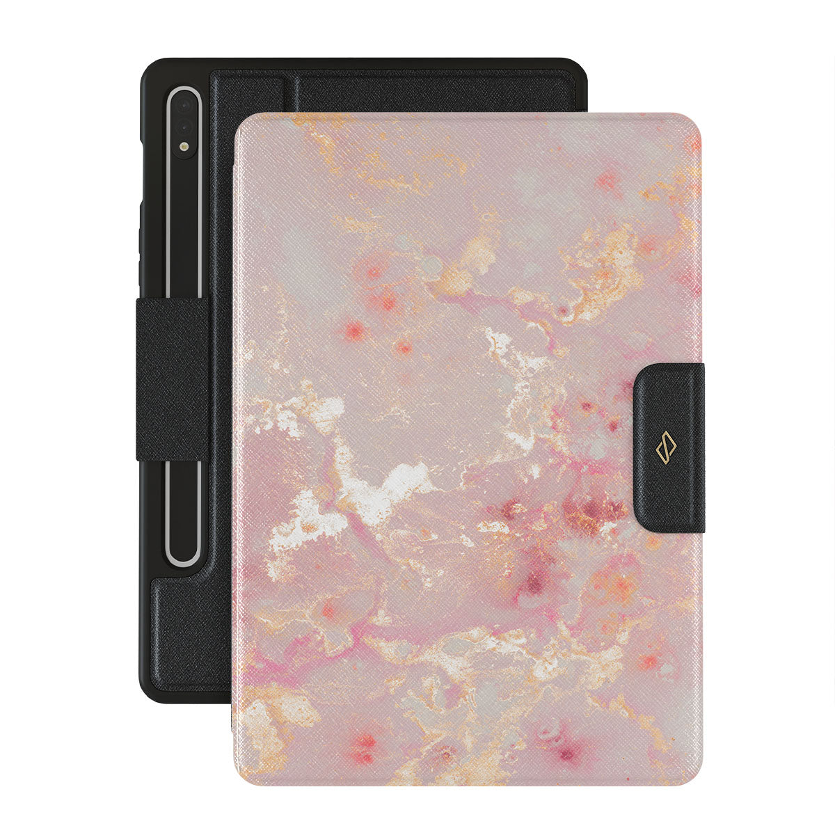 The sun is shining and creates a golden reflection in the corals. Take this scenery with yourself with our pretty and pink Golden Coral Samsung Galaxy Tab S10+ folio case. Add protection to your Galaxy Tab with a unique pink marble pattern that is guaranteed to catch everyone's eye.