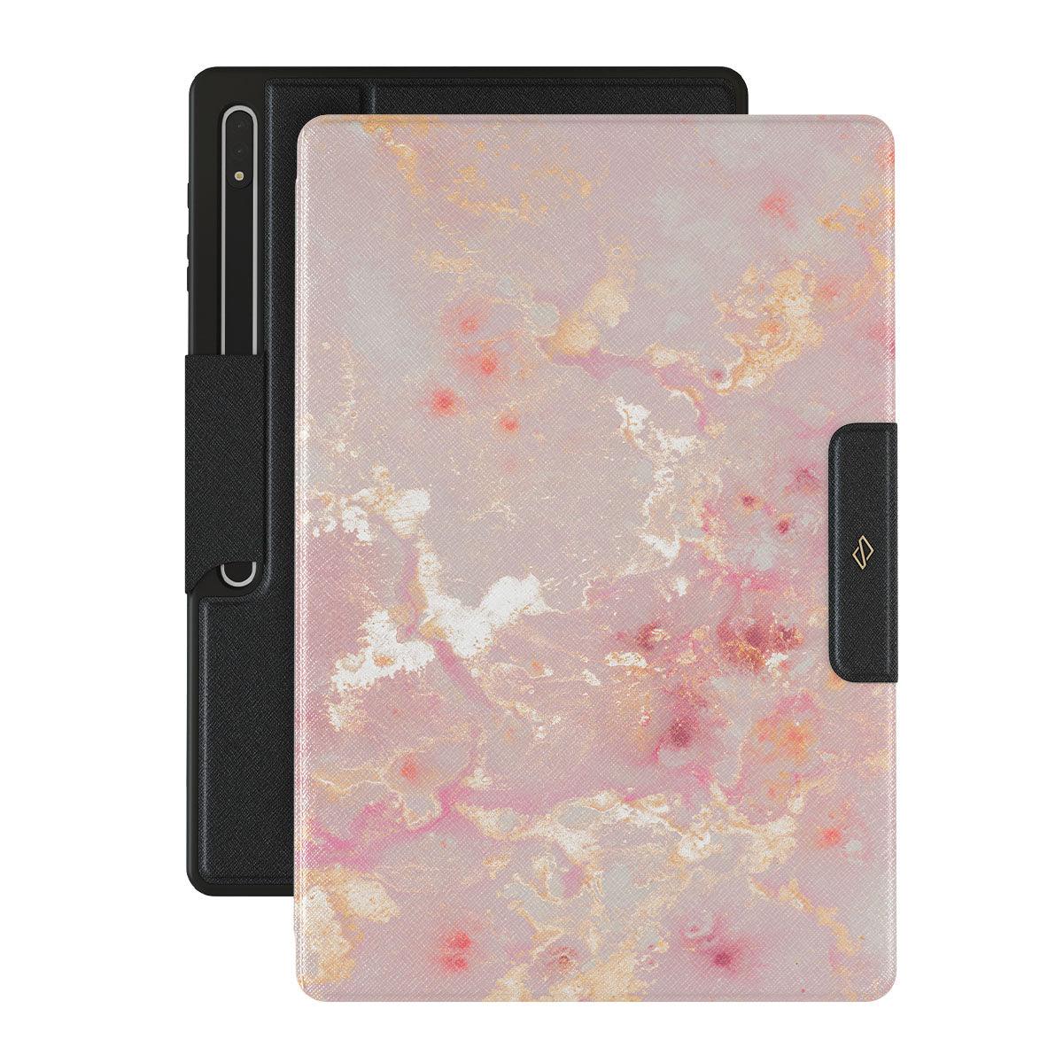 The sun is shining and creates a golden reflection in the corals. Take this scenery with yourself with our pretty and pink Golden Coral Samsung Galaxy Tab S8 Ultra folio case. Add protection to your Galaxy Tab with a unique pink marble pattern that is guaranteed to catch everyone's eye.