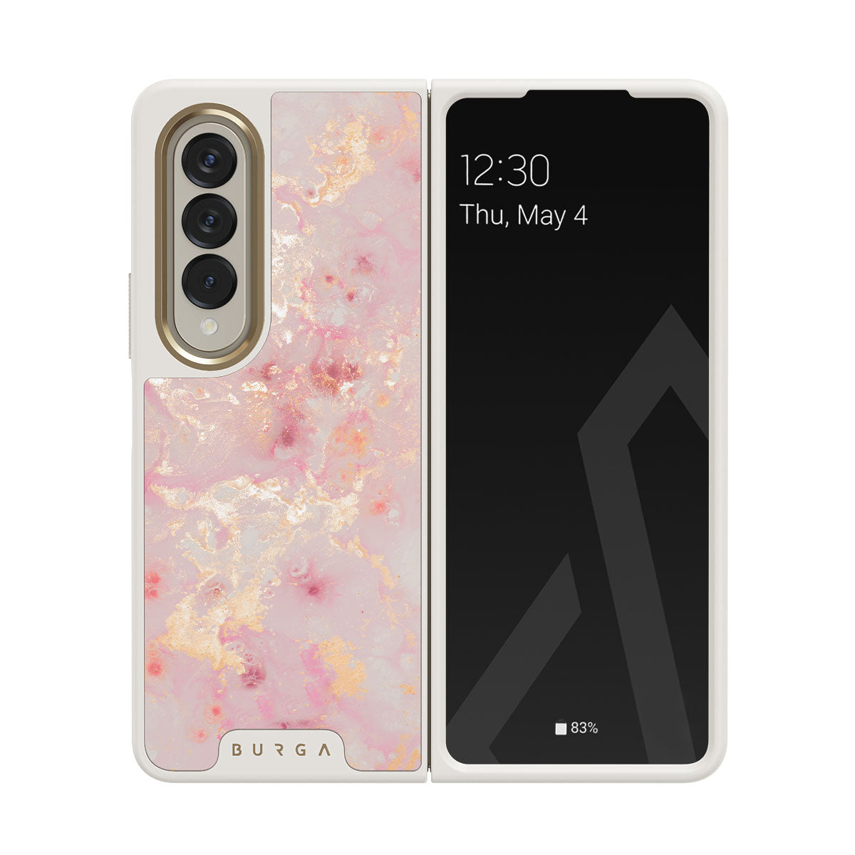 The sun is shining and creates a golden reflection in the corals. Take this scenery with yourself with our pretty and pink Golden Coral Samsung Galaxy Z Fold 4 phone case. Add protection to your phone with a unique pink marble pattern that is guaranteed to catch everyone's eye.