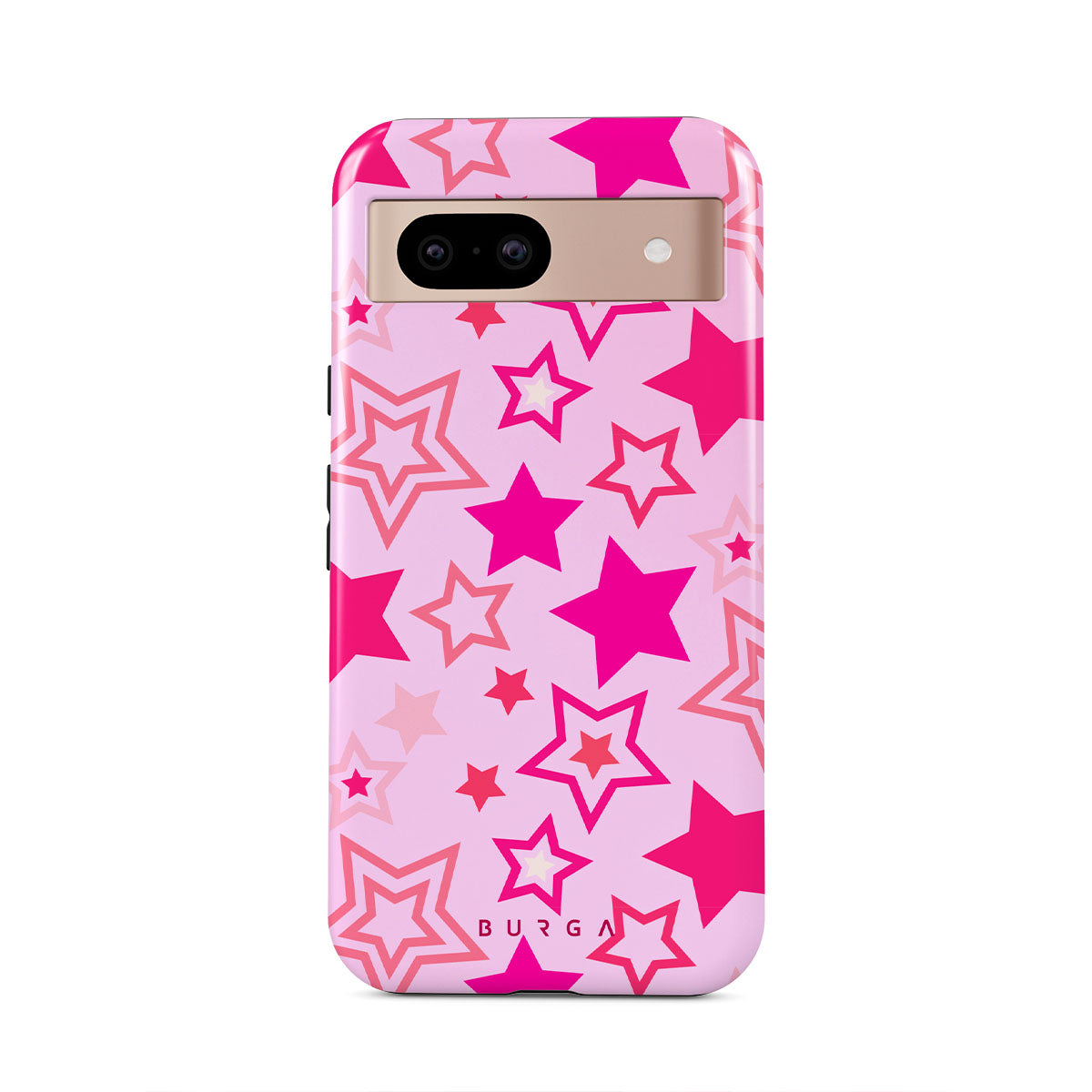 Buckle up for a starry ride, and let's twirl under the Plastic Sky. Neon stars shimmering across a cheeky rose-tinted galaxy create a playful space-disco atmosphere. Be the center of the universe with our Plastic Sky Google Pixel 8a phone case!