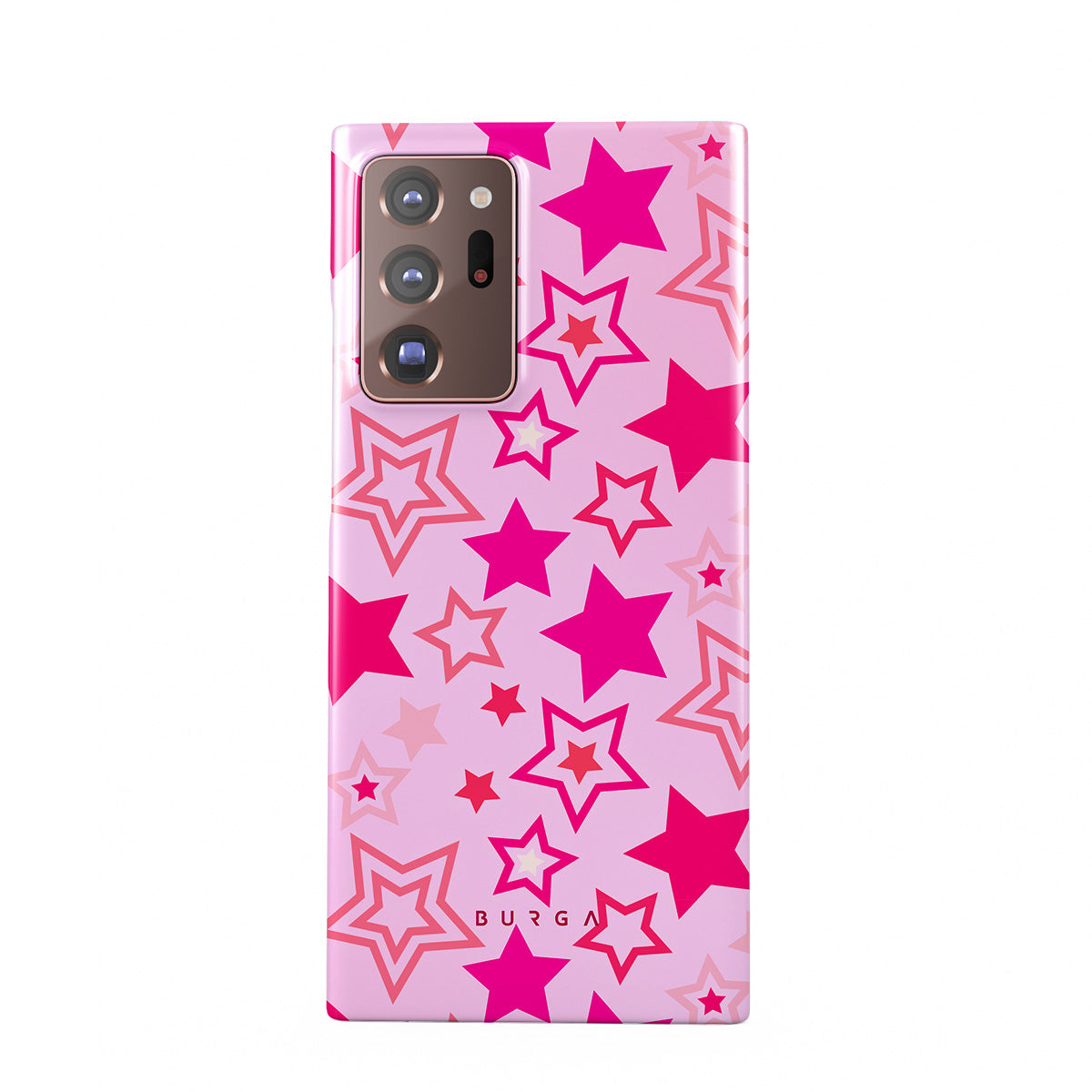Buckle up for a starry ride, and let's twirl under the Plastic Sky. Neon stars shimmering across a cheeky rose-tinted galaxy create a playful space-disco atmosphere. Be the center of the universe with our Plastic Sky Samsung Galaxy Note 20 Ultra 4G / 5G phone case!