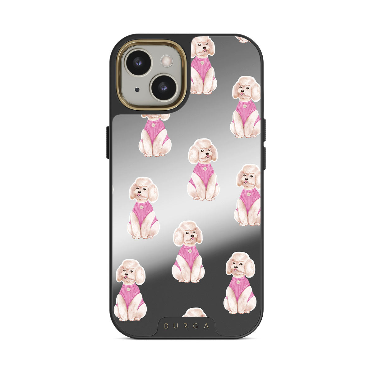 This design features: poodles, dogs, pets, pink details, mirror