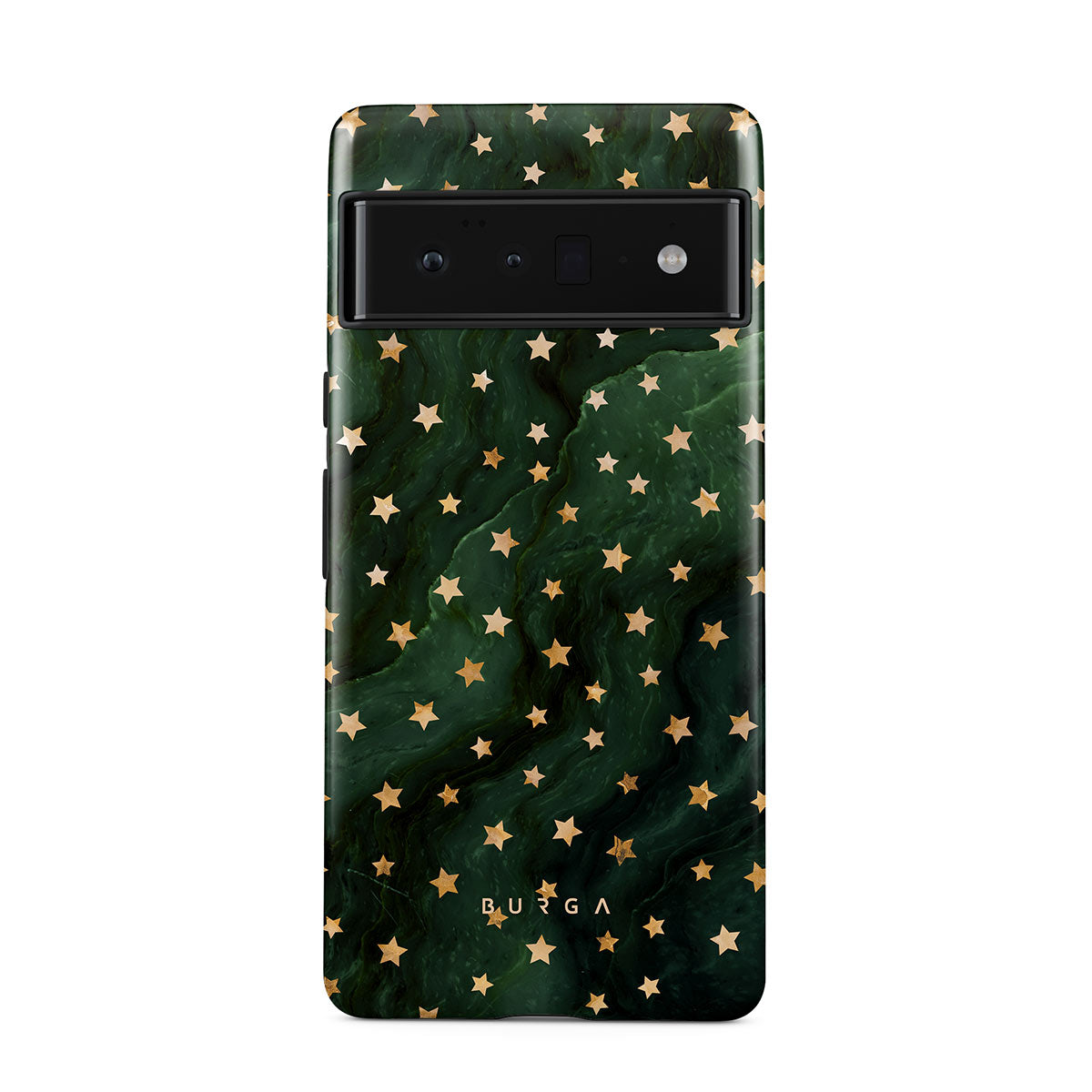 Our Prince Charming Google Pixel 6 Pro phone case is the only prince your device will ever need. Deep green marble with some magical stars will indeed look extraordinary in your accessories collection. We can also promise that this prince, although green, will not turn into a frog, and he will always be there for your phone!