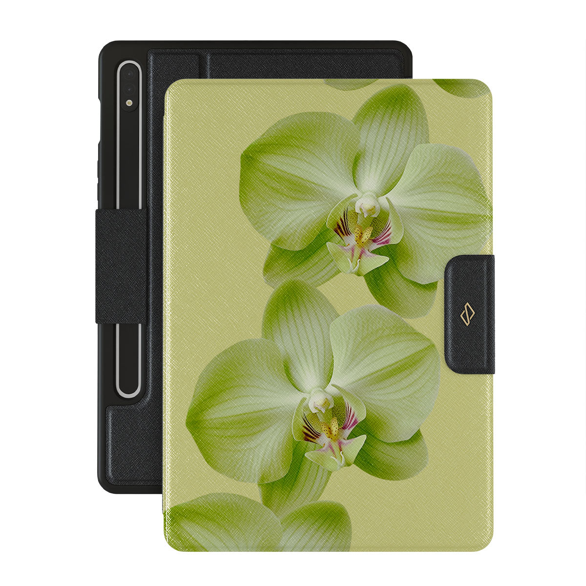 Deep within the untamed elegance of the wild, these orchids bloom with a quiet confidence. The Purity Samsung Galaxy Tab S9+ folio case design is an homage to the idea that embracing one's foundation, the very essence of what makes us who we are, can become the source of our greatest power.