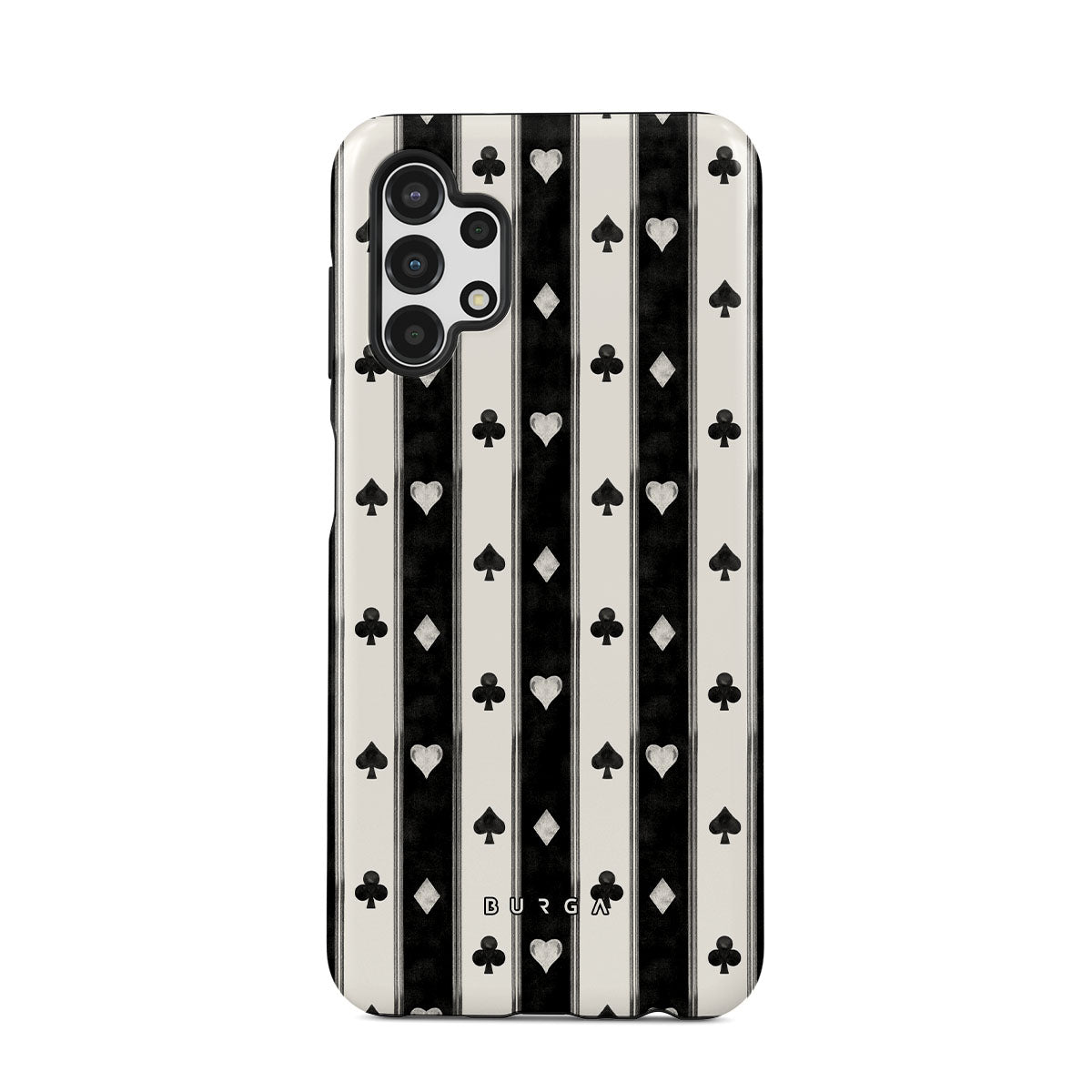 Black and white, power and play. The Queen’s Court Samsung Galaxy A13 4G phone case design doesn’t ask for permission—it takes what it wants. If you’re not moving pieces, you’re one of them.