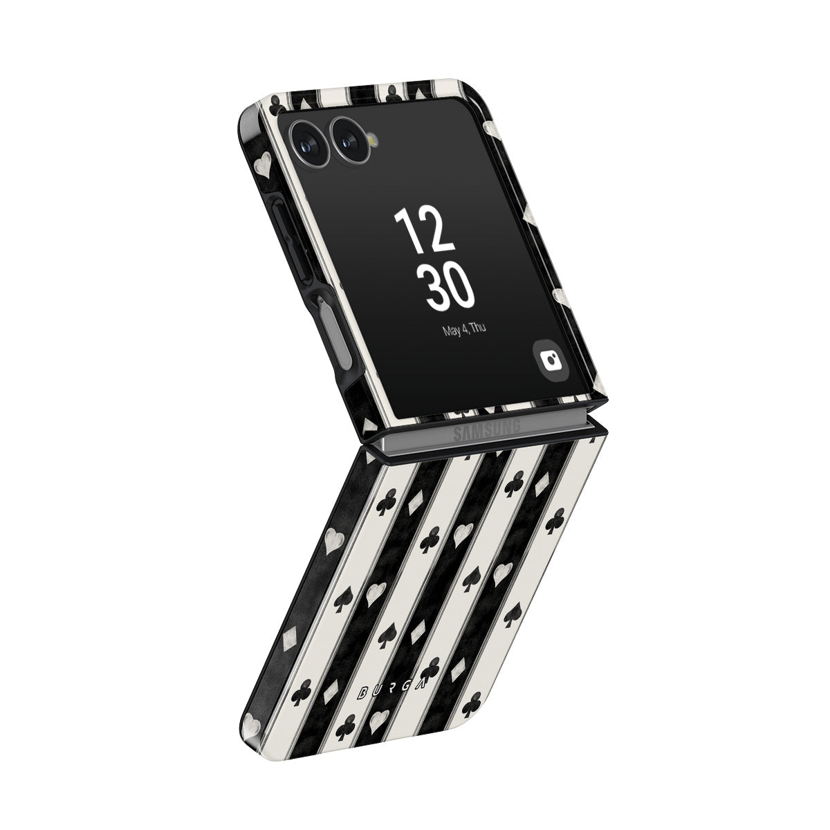 Black and white, power and play. The Queen’s Court Samsung Galaxy Z Flip 7 phone case design doesn’t ask for permission—it takes what it wants. If you’re not moving pieces, you’re one of them.