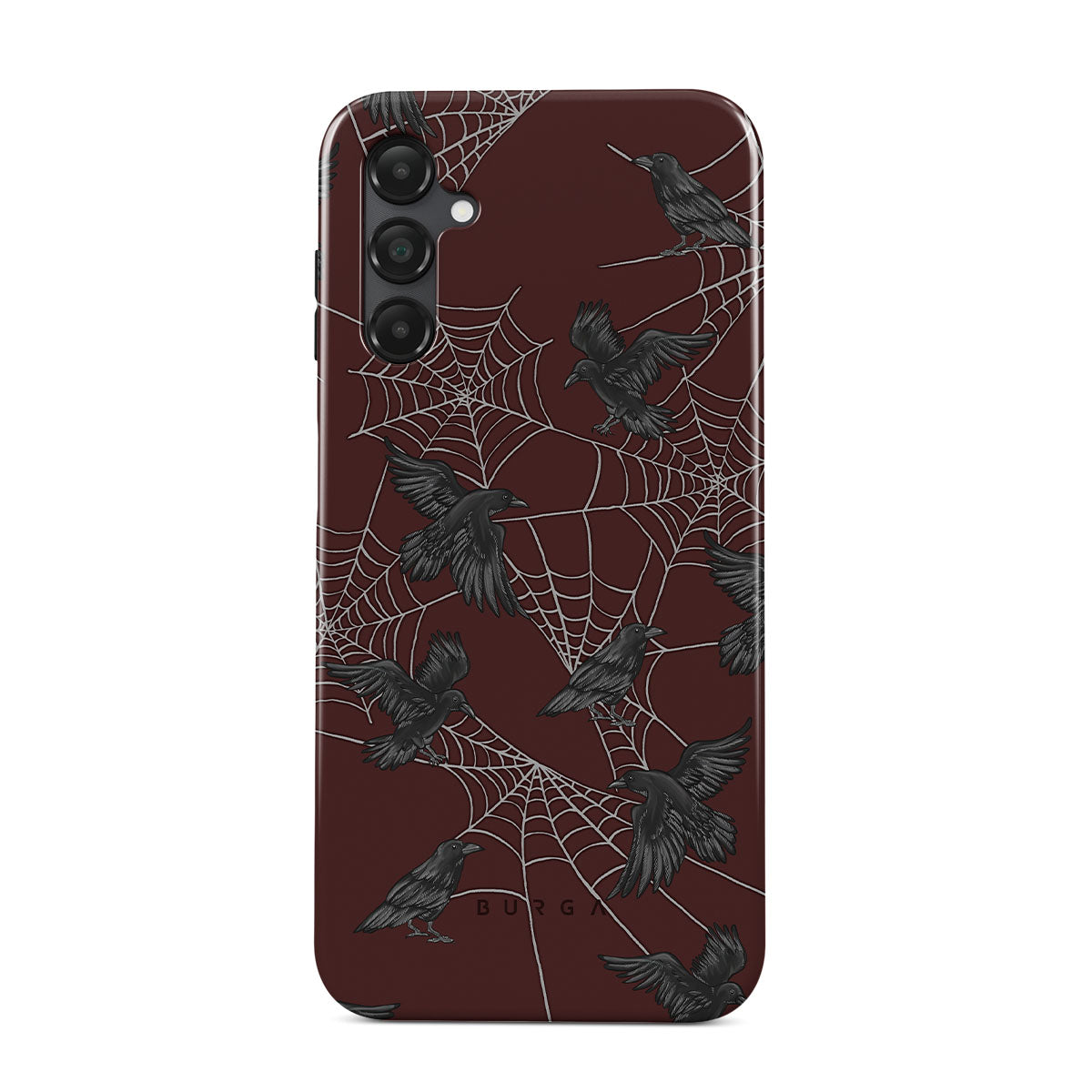 This design features: crows, birds, spiderweb