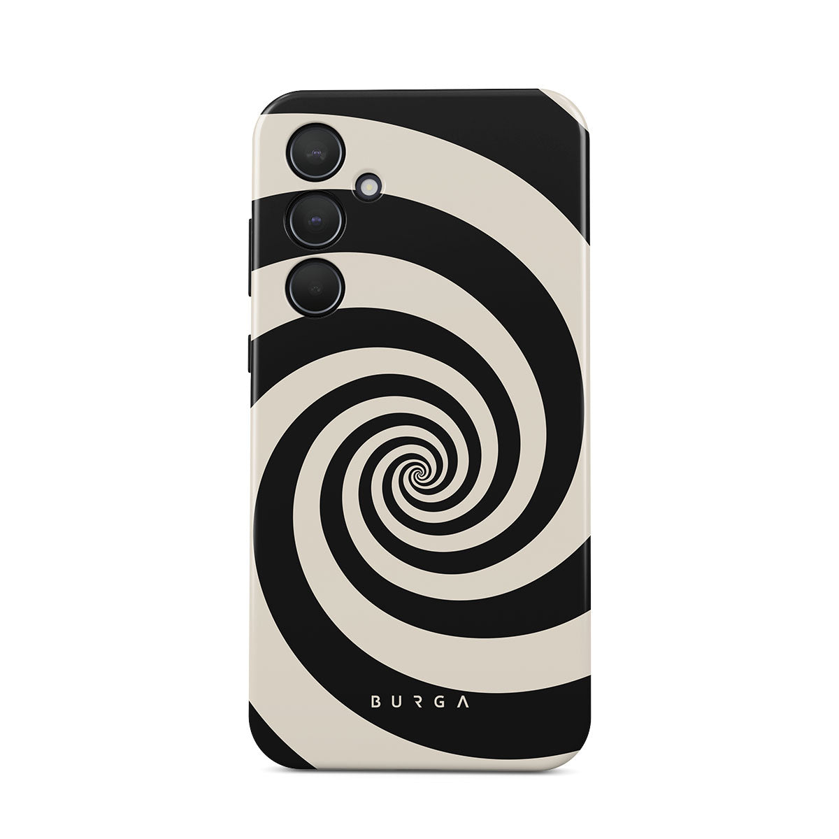 A visual vortex that pulls you in—where you end up is anyone’s guess. Reality? Fantasy? The lines blur in this hypnotic Samsung Galaxy A35 phone case design. One wrong turn, or the right one? You decide.
