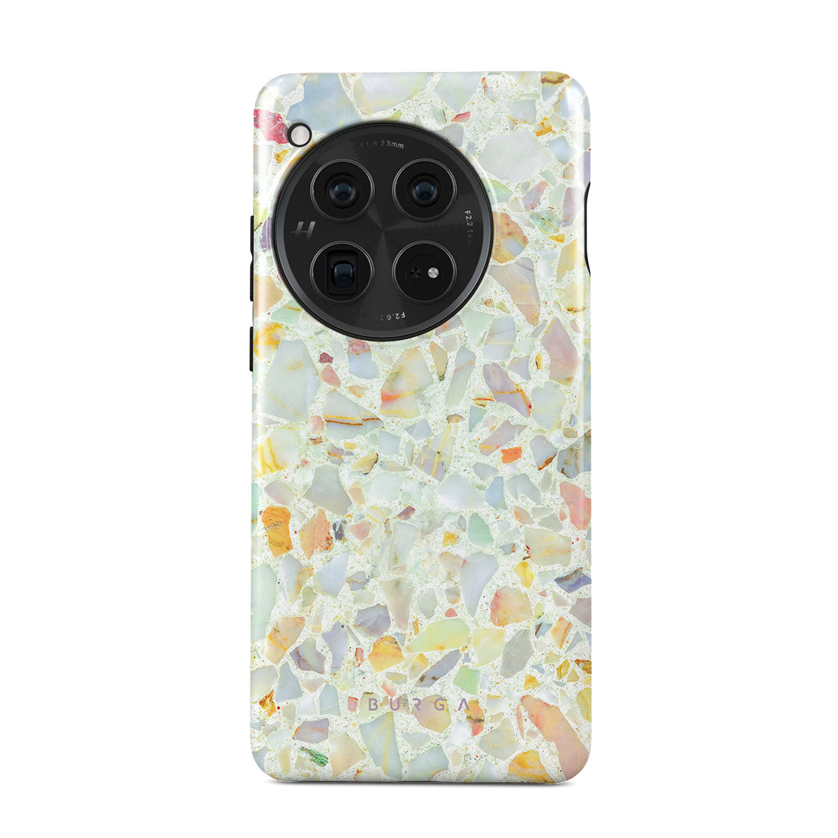 Sun is shining bright, creating rainbows on the path as the light and warm rain just washed the tiles. Walk around barefoot and feel the magic in your steps. Take this summery feeling encased in a cute OnePlus 12 phone case that is as protective as mesmerizing the rainbow can be.