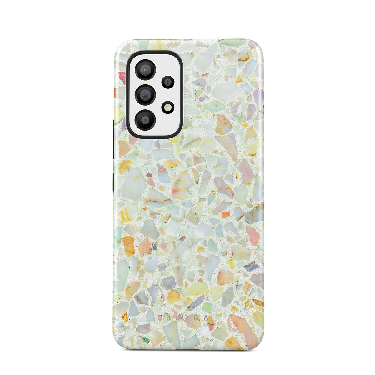 Sun is shining bright, creating rainbows on the path as the light and warm rain just washed the tiles. Walk around barefoot and feel the magic in your steps. Take this summery feeling encased in a cute Samsung Galaxy A53 phone case that is as protective as mesmerizing the rainbow can be.