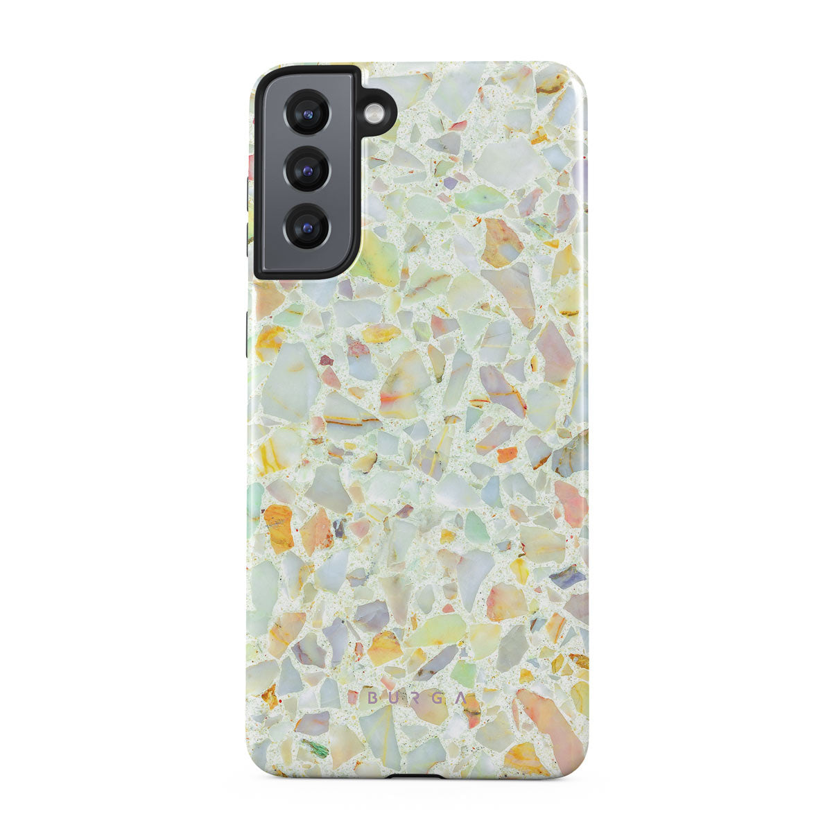 Sun is shining bright, creating rainbows on the path as the light and warm rain just washed the tiles. Walk around barefoot and feel the magic in your steps. Take this summery feeling encased in a cute Samsung Galaxy S21 phone case that is as protective as mesmerizing the rainbow can be.