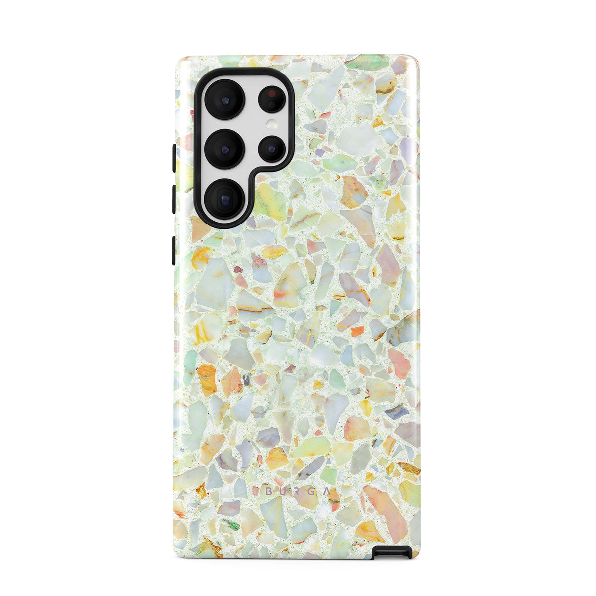 Sun is shining bright, creating rainbows on the path as the light and warm rain just washed the tiles. Walk around barefoot and feel the magic in your steps. Take this summery feeling encased in a cute Samsung Galaxy S22 Ultra phone case that is as protective as mesmerizing the rainbow can be.