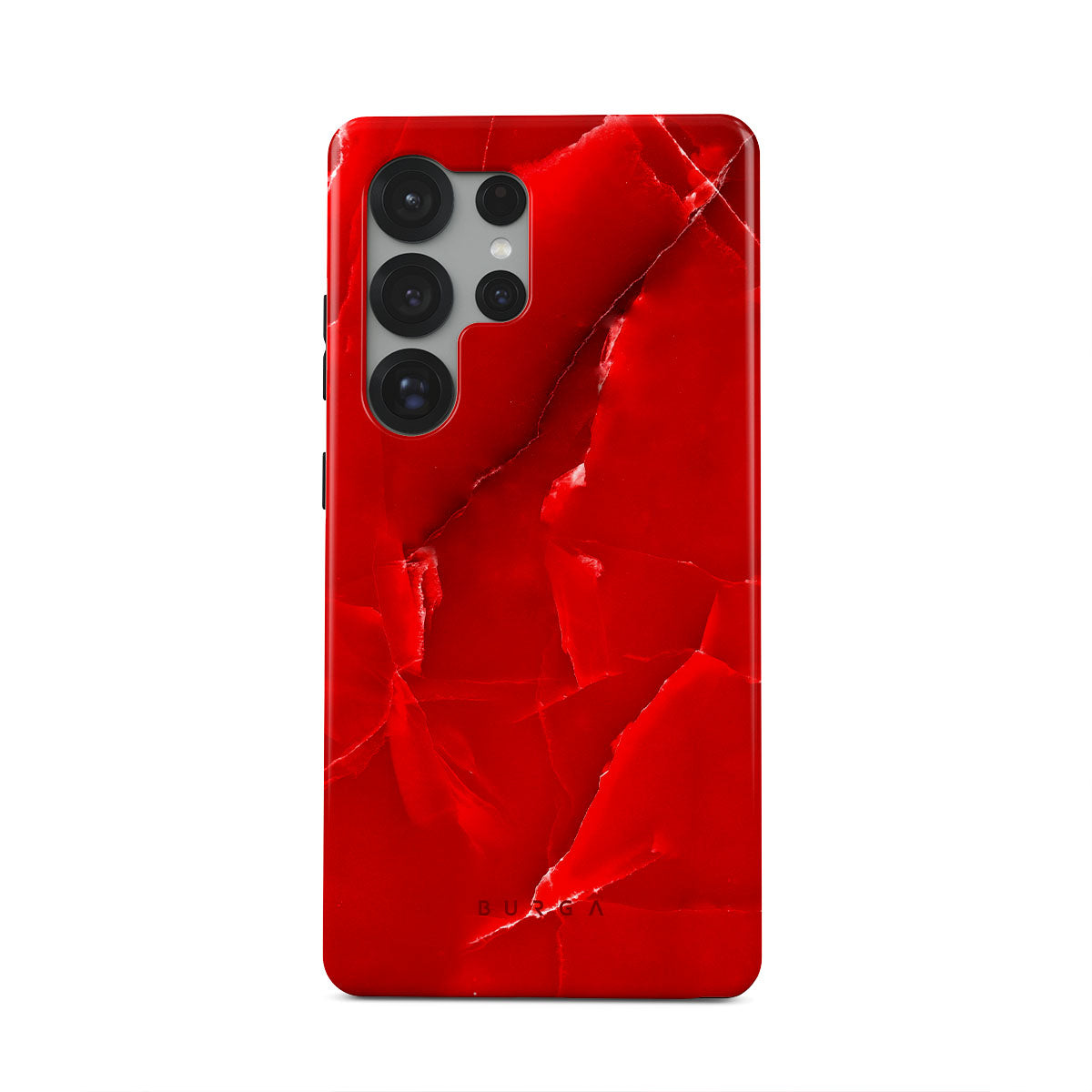 Be as bright as the red fire that cannot be tamed. The Wild Blaze Samsung Galaxy S25 Ultra phone case features a striking bright red marble design that is guaranteed to add fierceness and a pop of color to your beloved device.
