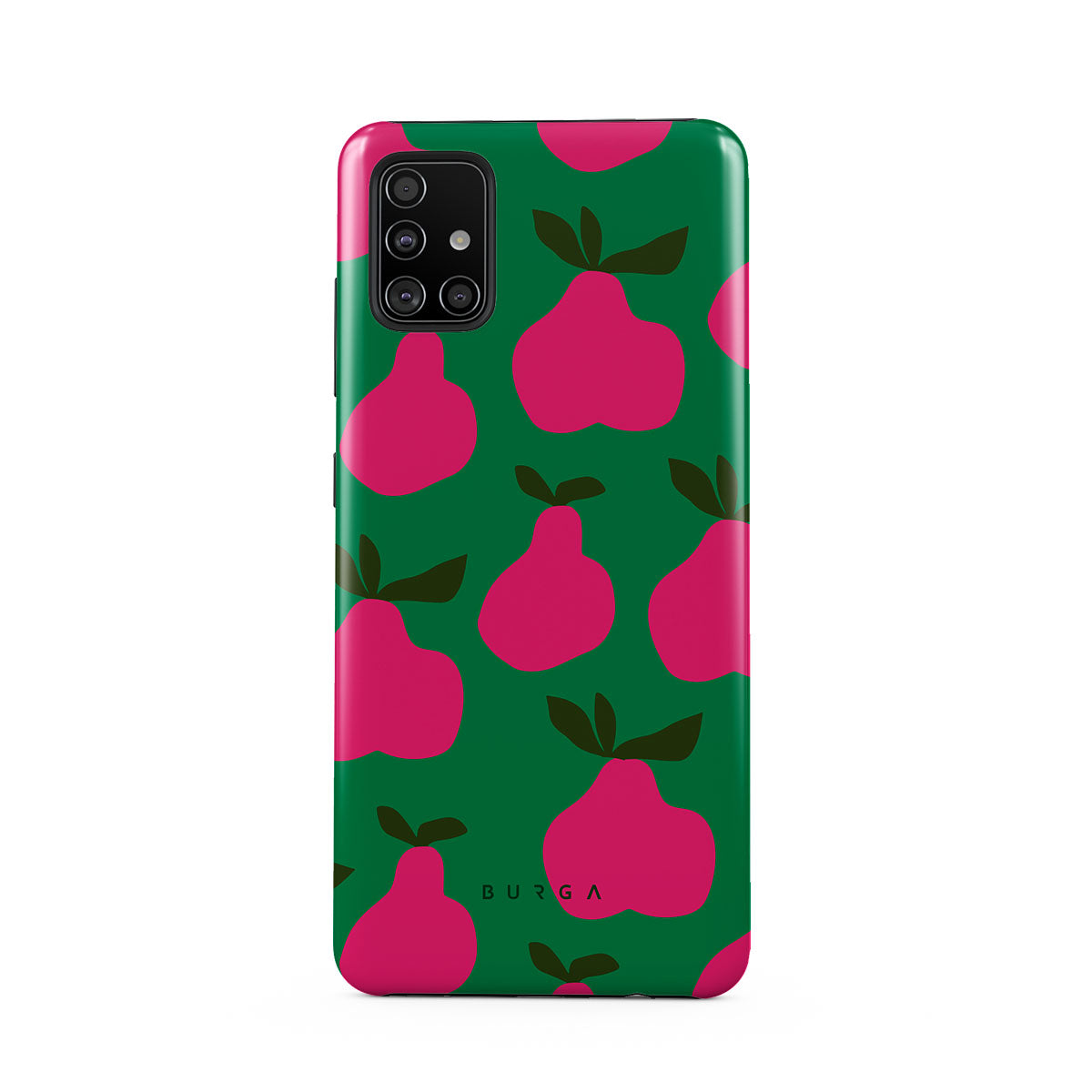 A symphony of refreshing pink pears against a backdrop of lush greeneryRefresco is a sip of summer, a zesty reminder of the sweetness surrounding us. With a lively design, this Samsung Galaxy A71 4G phone case turns your device into a playful masterpiece, inviting you to embrace the joy and vibrancy of life.