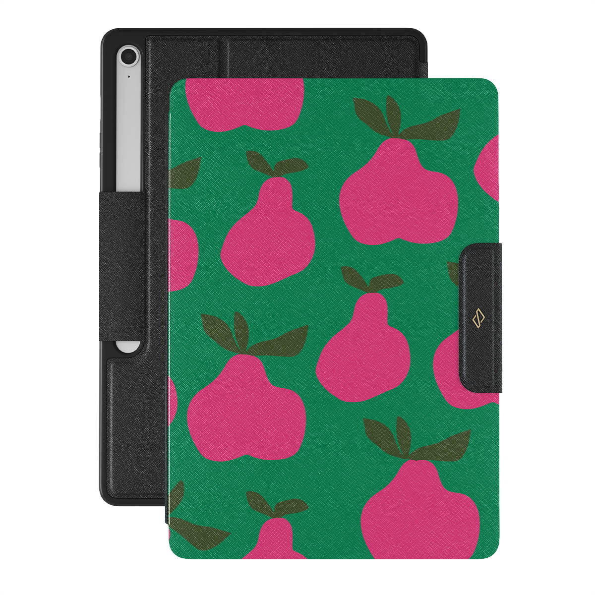 A symphony of refreshing pink pears against a backdrop of lush greenery—Refresco is a sip of summer, a zesty reminder of the sweetness surrounding us. With a lively design, this Samsung Galaxy Tab S10+ FE folio case turns your device into a playful masterpiece, inviting you to embrace the joy and vibrancy of life.