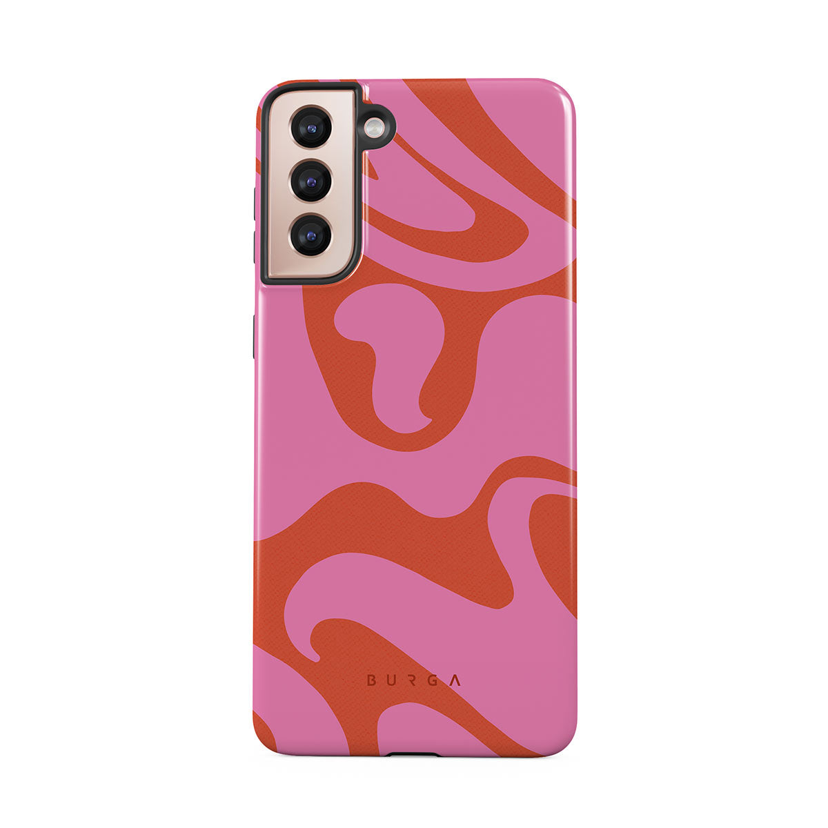 Bold and big take of a liquid swirl can be met in our Ride the Wave Samsung Galaxy S21 Plus phone case. It will not only turn your device into a beautiful art piece but will also keep it safe and sound while encasing it in a design from a 70s art gallery!