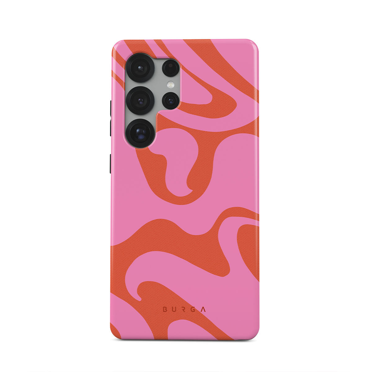 Bold and big take of a liquid swirl can be met in our Ride the Wave Samsung Galaxy S25 Ultra phone case. It will not only turn your device into a beautiful art piece but will also keep it safe and sound while encasing it in a design from a 70s art gallery!