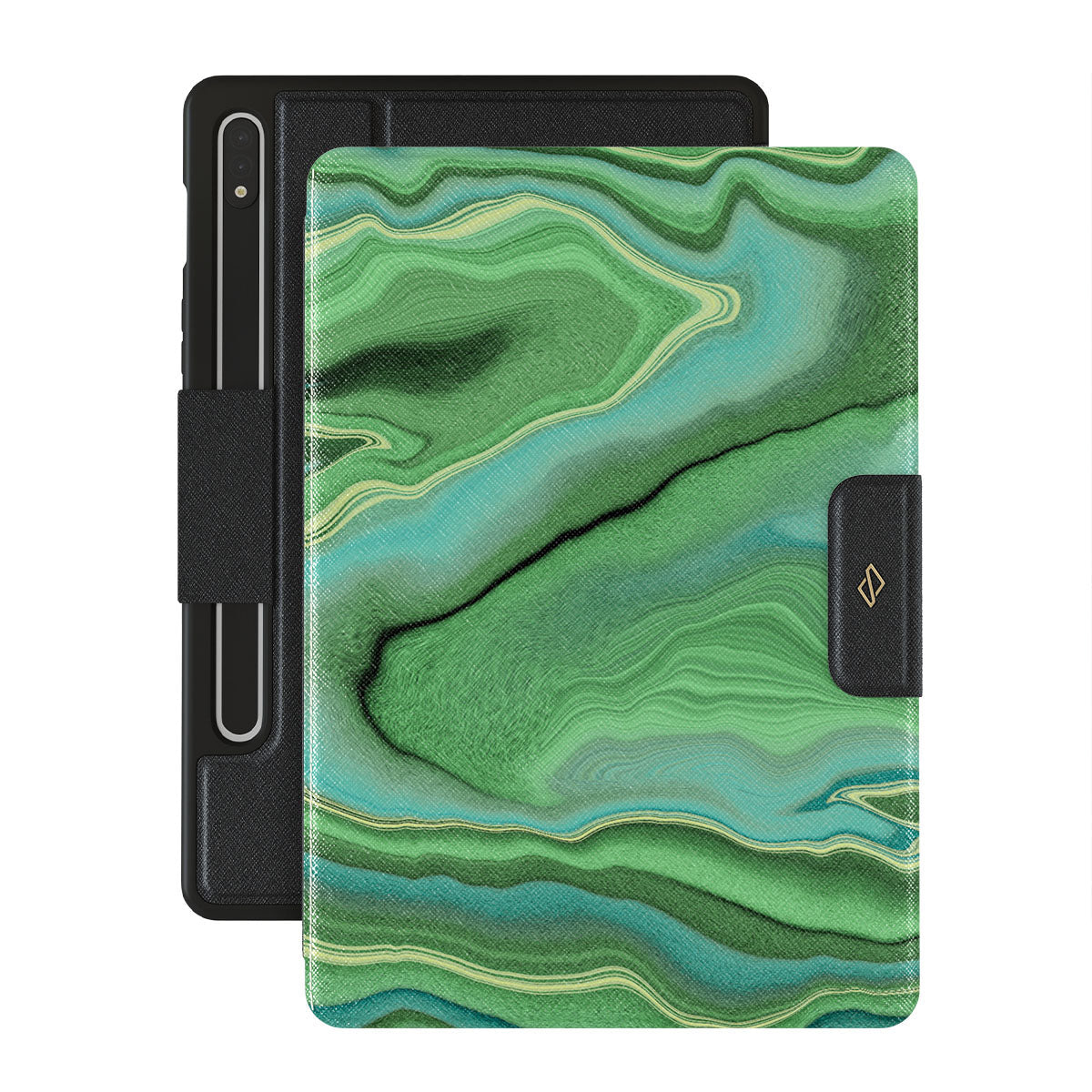 With this Samsung Galaxy Tab S9 FE folio case, you can and must Rock On! This psychedelic marble pattern will look great during a day out with friends, on a picnic, or in a concert. Take a touch of timeless rock'n'roll and enjoy turning your phone into a perfect accessory.