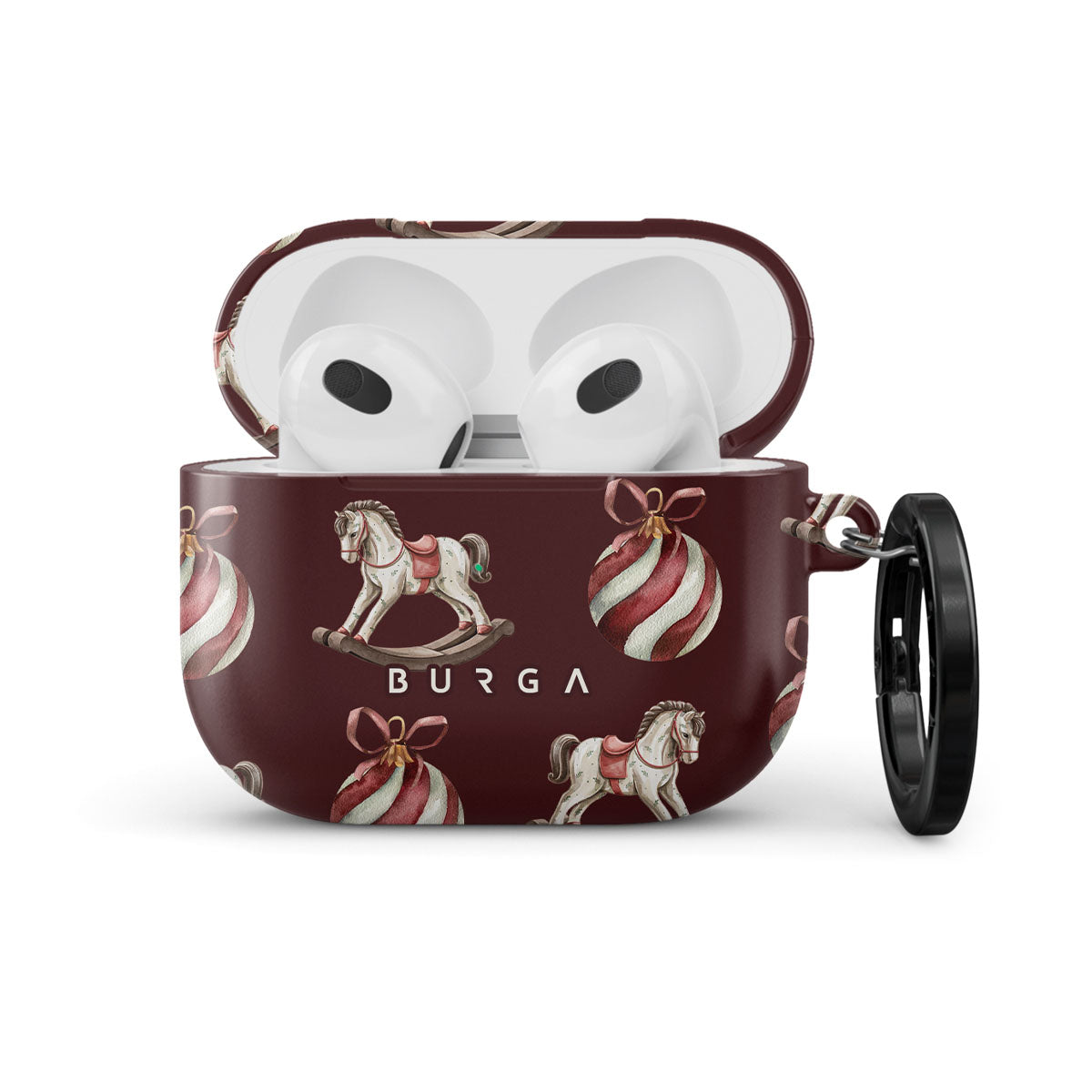Jingle all the way with this playful AirPods 3 case cover design. Featuring rocking horses and candy-striped bells, our Rocking Around design transports you back to childhood moments of decorating the tree and waiting for Santa. It’s the ultimate throwback to vintage Christmas charm.
