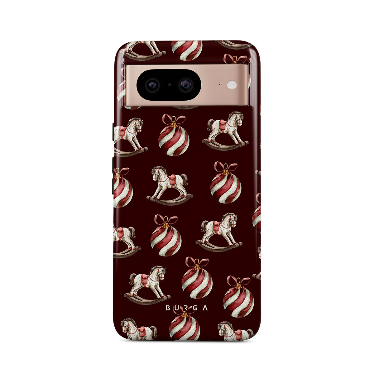 Jingle all the way with this playful Google Pixel 8 phone case design. Featuring rocking horses and candy-striped bells, our Rocking Around design transports you back to childhood moments of decorating the tree and waiting for Santa. It’s the ultimate throwback to vintage Christmas charm.