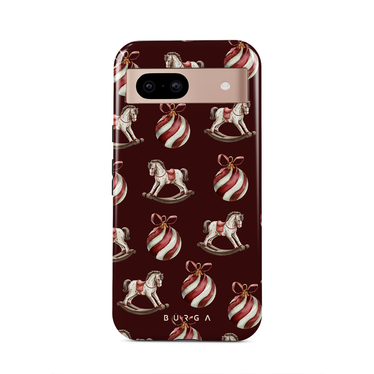 Jingle all the way with this playful Google Pixel 8a phone case design. Featuring rocking horses and candy-striped bells, our Rocking Around design transports you back to childhood moments of decorating the tree and waiting for Santa. It’s the ultimate throwback to vintage Christmas charm.