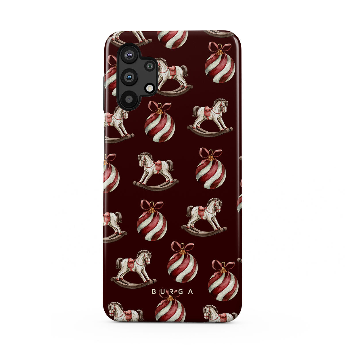 Jingle all the way with this playful Samsung Galaxy A32 5G phone case design. Featuring rocking horses and candy-striped bells, our Rocking Around design transports you back to childhood moments of decorating the tree and waiting for Santa. It’s the ultimate throwback to vintage Christmas charm.