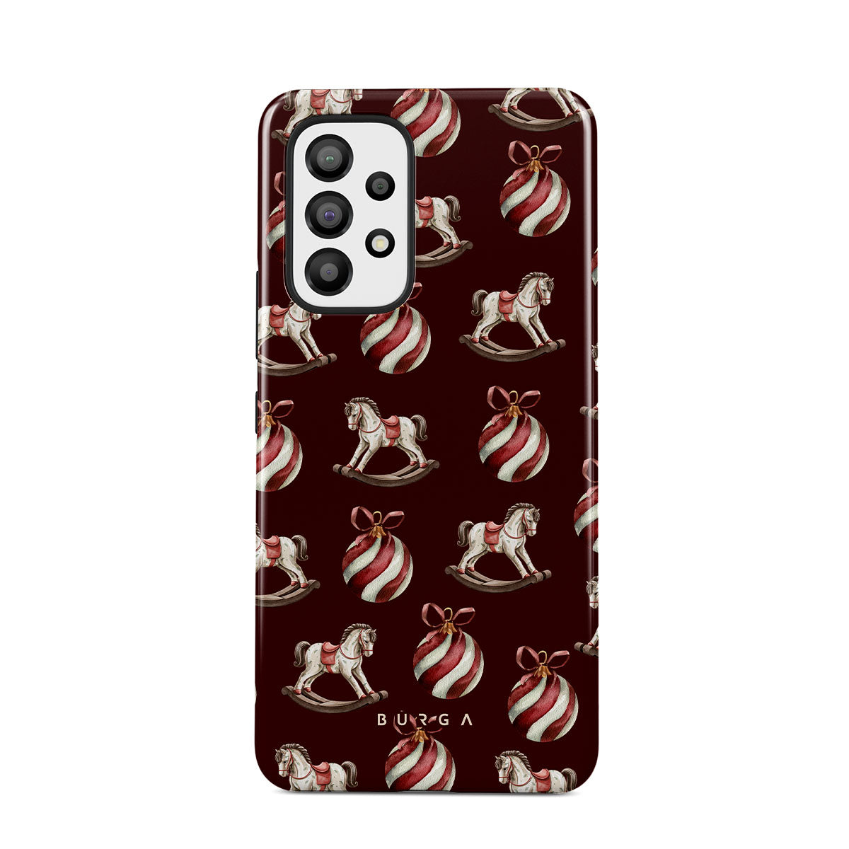 Jingle all the way with this playful Samsung Galaxy A53 phone case design. Featuring rocking horses and candy-striped bells, our Rocking Around design transports you back to childhood moments of decorating the tree and waiting for Santa. It’s the ultimate throwback to vintage Christmas charm.