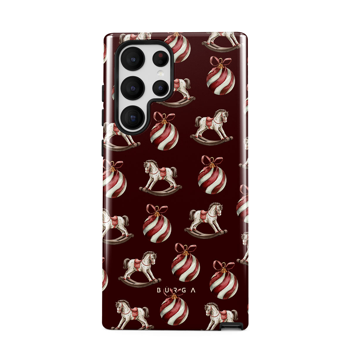Jingle all the way with this playful Samsung Galaxy S22 Ultra phone case design. Featuring rocking horses and candy-striped bells, our Rocking Around design transports you back to childhood moments of decorating the tree and waiting for Santa. It’s the ultimate throwback to vintage Christmas charm.