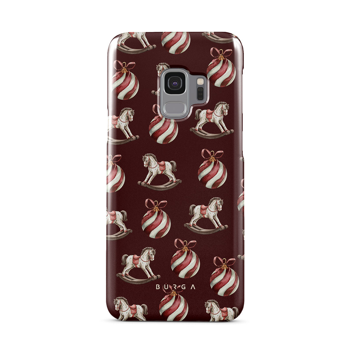 Jingle all the way with this playful Samsung Galaxy S9 phone case design. Featuring rocking horses and candy-striped bells, our Rocking Around design transports you back to childhood moments of decorating the tree and waiting for Santa. It’s the ultimate throwback to vintage Christmas charm.