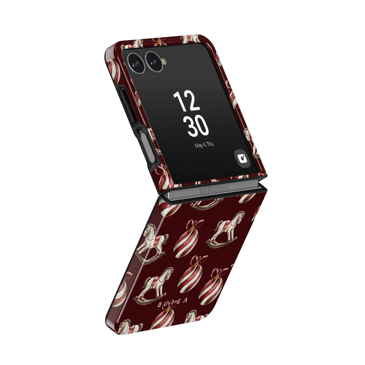 Jingle all the way with this playful Samsung Galaxy Z Flip 7 phone case design. Featuring rocking horses and candy-striped bells, our Rocking Around design transports you back to childhood moments of decorating the tree and waiting for Santa. It’s the ultimate throwback to vintage Christmas charm.