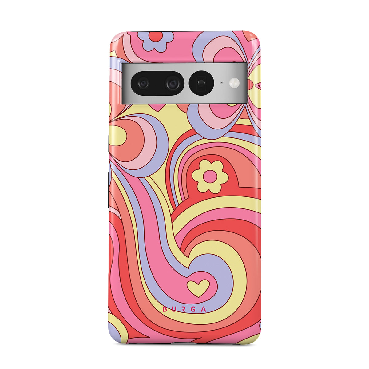 A design embodying a radiant, cheerful life filled with hope and joy. A celebration in hues, a mix of vibrant pink, yellow, and blue swirls. Roller Disco is where fashion meets fun. With beautiful pastels blending into a head-turning style, every day feels like a party. Spin your Google Pixel 7 Pro phone case into the spotlight!