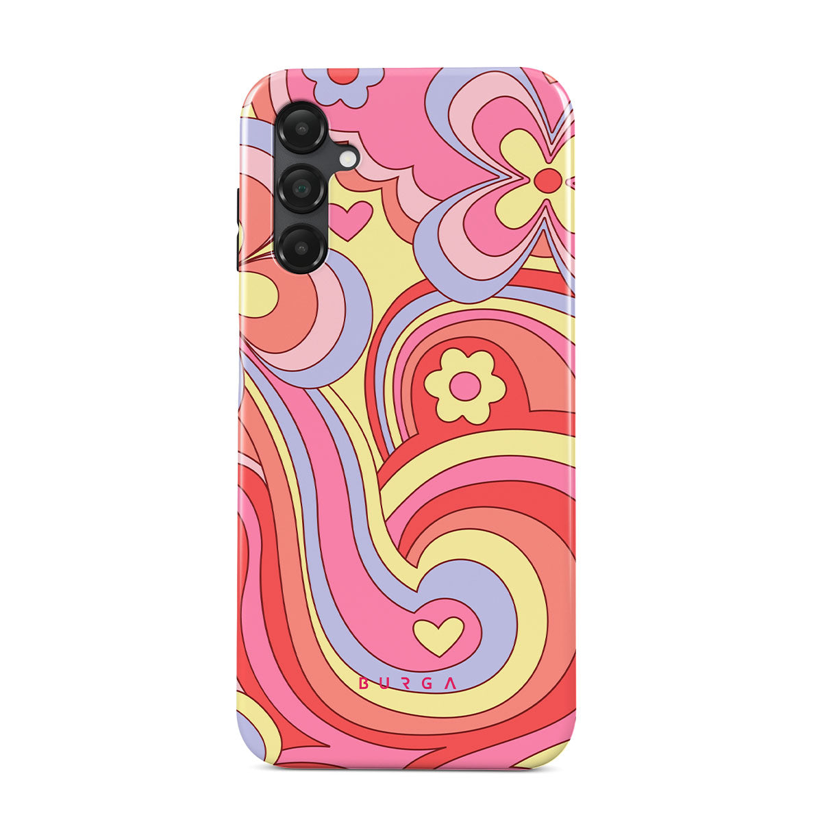 A design embodying a radiant, cheerful life filled with hope and joy. A celebration in hues, a mix of vibrant pink, yellow, and blue swirls. Roller Disco is where fashion meets fun. With beautiful pastels blending into a head-turning style, every day feels like a party. Spin your Samsung Galaxy A25 phone case into the spotlight!